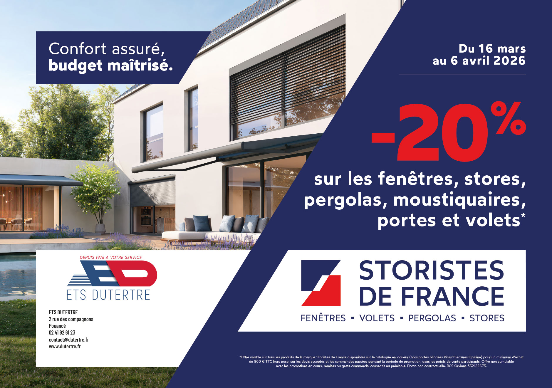 Du 16 mars au 6 avril, profitez des offres exceptionnelles Storistes de France chez SARL Dutertre !